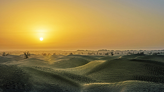 中国最大的沙漠。置身大漠沙海,听流沙风语,看壮观落日。
