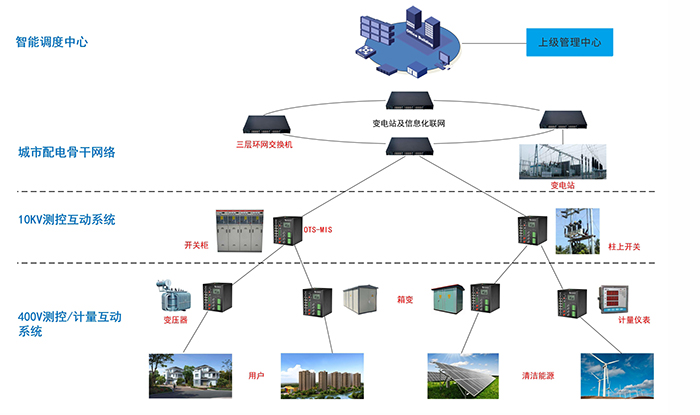 - 建议采用OTS-MIS多业务以太网交换机组网构建配网自动化接入网,万兆/千兆上联三层骨干环网;
